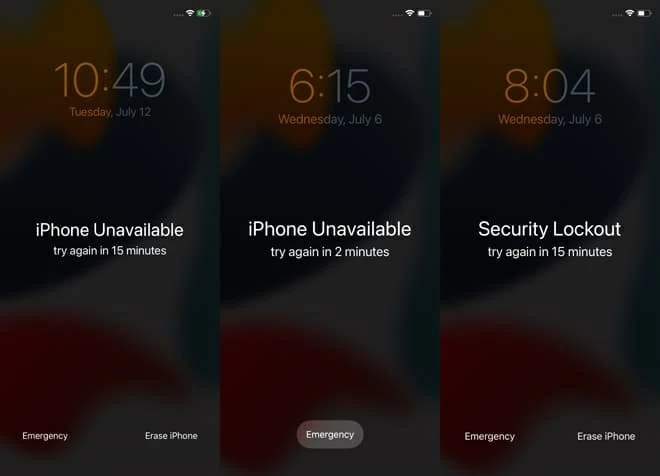 Schlimmer noch: Sobald Sie den falschen Code 6 Mal eingegeben haben, erscheint die Meldung „iPhone nicht verfügbar In 1 Minute erneut versuchen" oder „iPad nicht verfügbar In 1 Minute erneut versuchen" . Sie müssen warten, bis die nicht verfügbare Zeit abgelaufen ist, um die nächste Chance zu erhalten, Ihr iPhone ohne korrektes Passwort zu entsperren. Je nachdem, wie oft Sie es falsch versuchen, erhalten Sie die Meldung „In 5 Minuten erneut versuchen", „In 15 Minuten erneut versuchen" oder „In 1 Stunde erneut versuchen". Je mehr Sie sich irren, desto länger müssen Sie warten.