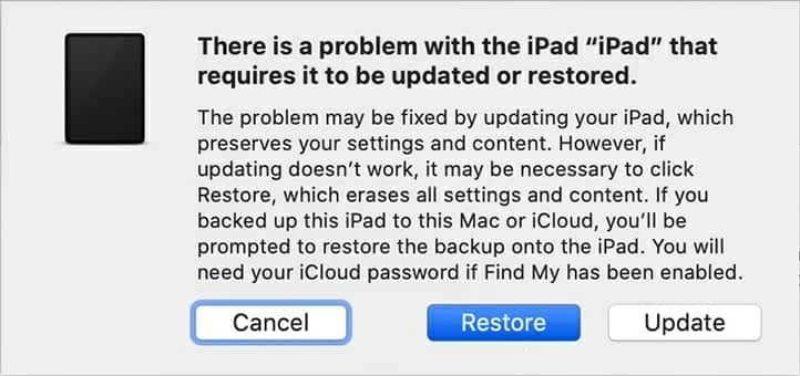 Sie können das iPad auch über einen PC oder Mac mit iTunes verbinden und aus dem Wiederherstellungsmodus wiederherstellen. Dabei wird das iPad gelöscht: Alle Medien, Apps und persönlichen Daten werden dauerhaft gelöscht und der vergessene Passcode wird entfernt.